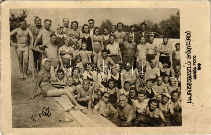 1949 Hajdúszoboszló, Gyógyfürdő, fürdőzők csoportja. Görög photo (EB)