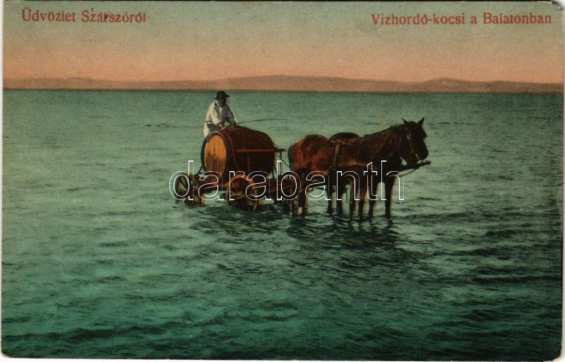 Balatonszárszó, vízhordó kocsi a Balatonban. Szép Kálmán kiadása (EM)