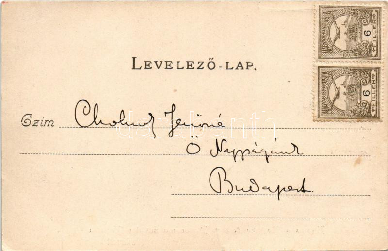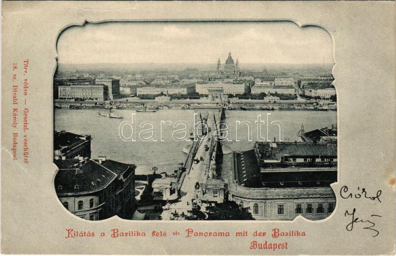 Budapest, Lánchíd, kilátás a Bazilika felé. A képeslap címzettje Cholnoky Jenőné, a földrajztudós felesége, feladója a férje. Divald Károly 18. sz. (kis szakadás / small tear)