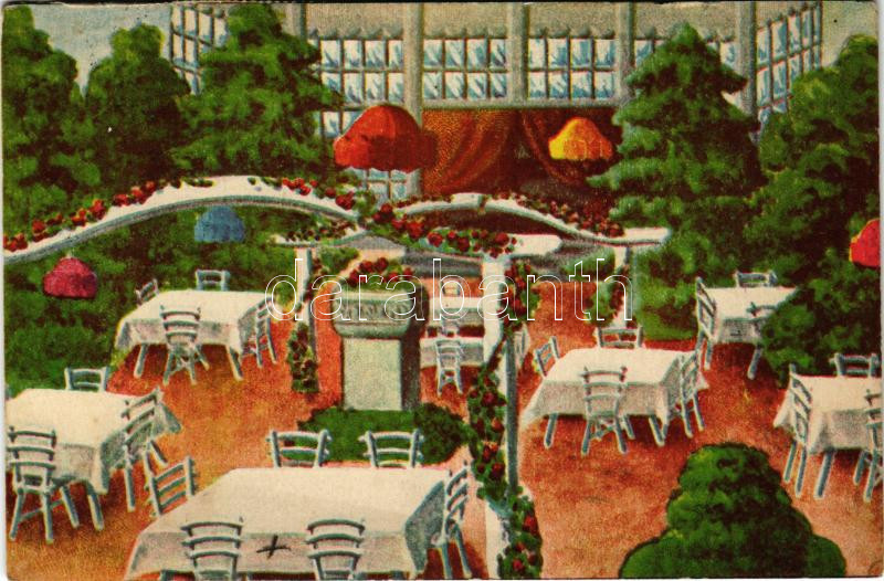 Budapest XIV. Columbus utca 11/b. Kovács Kelemen Rózsakert vendéglője, terasz, hátoldalán a tulajdonos reklámja. Klösz Gy. és Fia (EK)