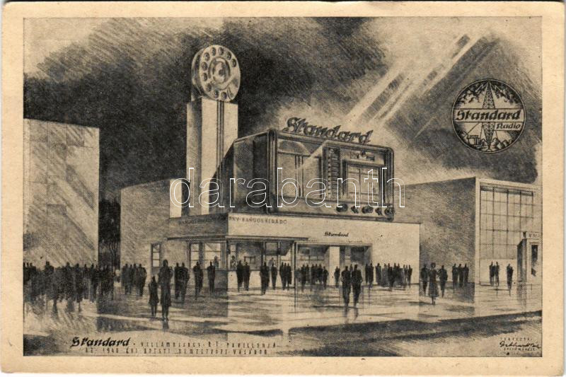 Budapest XIV. Standard Villamossági R.T. pavilonja az 1940. évi Budapesti Nemzetközi Vásáron. Standard Rádió reklám + "1940 XXXV. Budapesti Nemzetközi Vásár Horthy Miklós országlásának 20. évében" So. Stpl. (gyűrődés / crease)