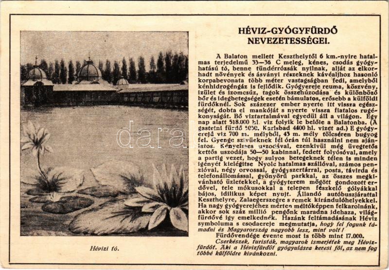Hévíz, Város nevezetességei: Hévizi tó. Farkasfalvi Kornél kiadása