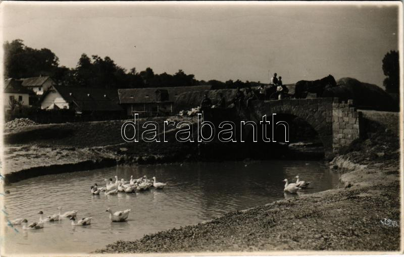 Ismeretlen település, kőhíd, libák. photo