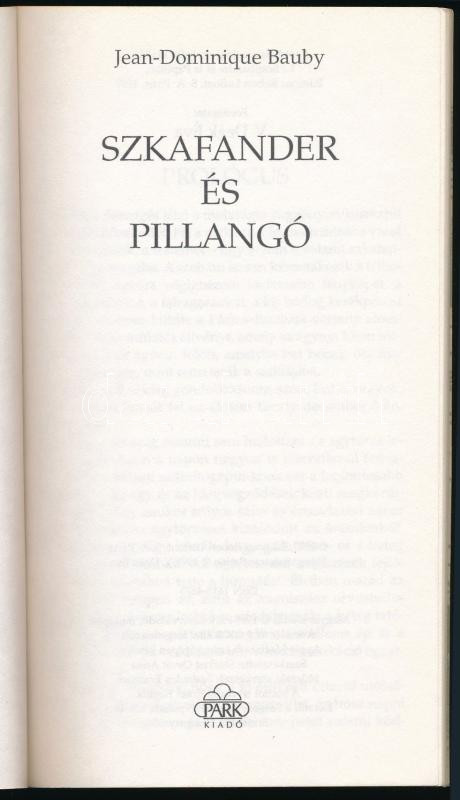 Bauby, Jean-Dominique: Szkafander és pillangó. 1998, Park. 79p. Kiadói papírkötés, jó állapotban.