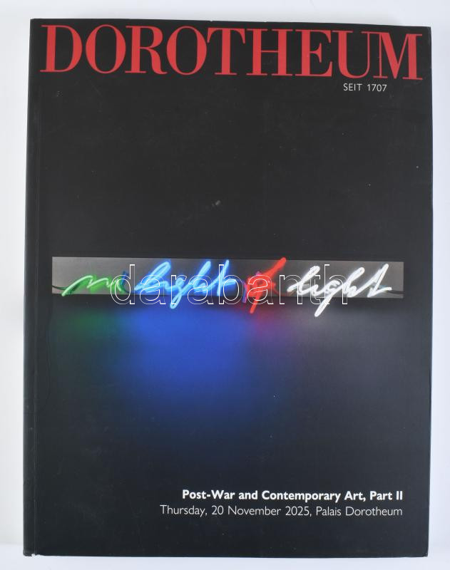 2025 Dorotheum aukciós katalógus, háború utáni és kortárs művészet (Post-War and Contemporary Art, Part II), színes fotókkal illusztrálva, angol nyelven. Kiadói papírkötés.