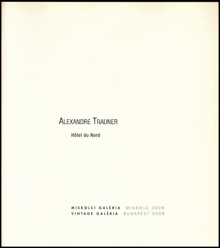 Alexandre Trauner: Hotel du Nord. Miskolc-Bp., 2008, Miskolci Galéria - Vintage Galéria, 63+1 p. Gazdag fekete-fehér fotóanyaggal illusztrált. Kiadói papírkötés.
