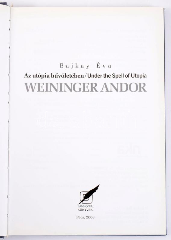 Bajkay Éva: Weininger Andor. Az utópia bűvöletében. Pécs, 2006, Pannónia Könyvek. 167p. Kiadói kartonált kötés, jó állapotban.