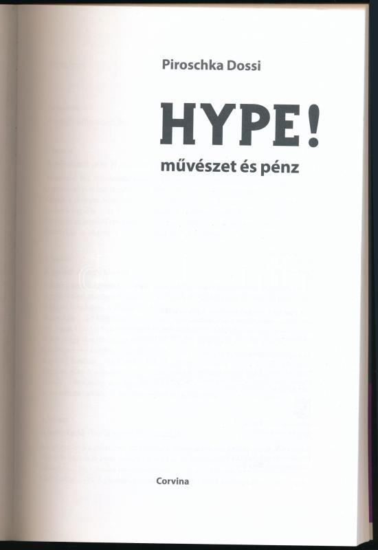 Dossi, Piroschka: Hype! Művészet és pénz. 2008, Corvina. 171p. Kiadói papírkötés, jó állapotban.