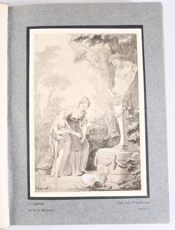 (Erotika a művészetben) Cary von Karwath: Die Erotik in der Kunst: Publikation der Gesellschaft österreichischer Bibliophilen Stück VIII / Wien & Leipzig 1908. C. W. Stern. 235p 40t. (erotikus illusztrációk). aranyozott kiadói vászon kötésben Festett kiadói vászon tékában. / (erotic illustrations). gilded publisher's cloth binding Painted publisher's cloth in a box.