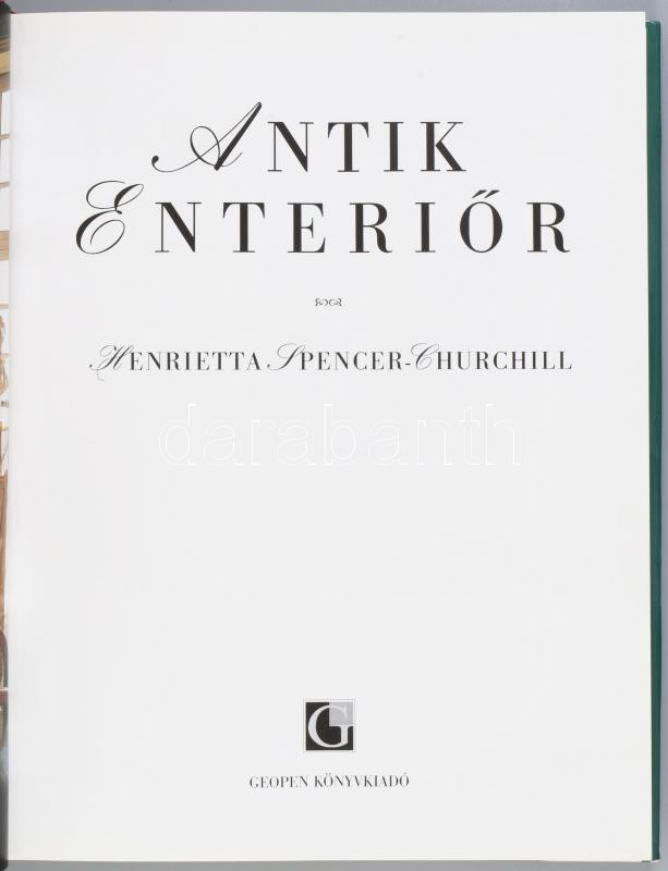 Henrietta Spencer-Churchill: Antik enteriőr. Ford.: Kiss Marianne. Bp., 1999, Geopen, 192 p. Első kiadás. Gazdag képanyaggal illusztrálva. Kiadói kartonált papírkötés, kiadói papír védőborítóban.