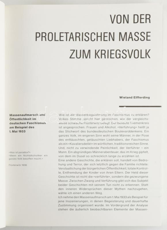 Inszenierung der Macht. Ästhetische faszination im Faschismus. Hrsg. von der NGBK. Redaktion: Klaus Behnken, Frank Wagner. Kreuzberg, 1987, Nischen Verlag. Német nyelven. Gazdag képanyaggal illusztrált. Kiadói papírkötés.