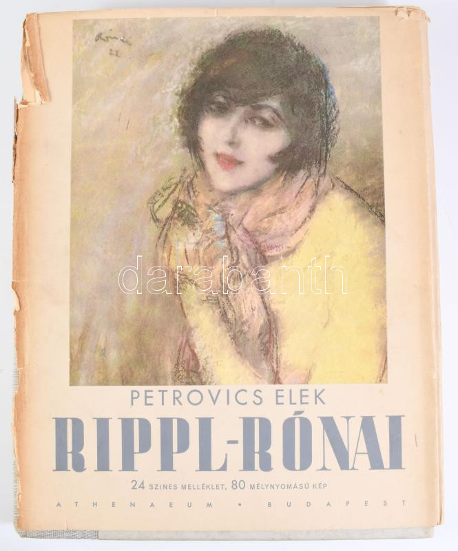 Petrovics Elek: Rippl-Rónai. Bp., [1943], Athenaeum, 1 (címkép) t.+ XXXII+[2]+126+[4] p. Második kiadás. Fekete-fehér és színes képekkel, Rippl-Rónai József műveinek reprodukcióival illusztrálva. Kiadói félvászon-kötés, sérült, két részre vált kiadói papír védőborítóval.
