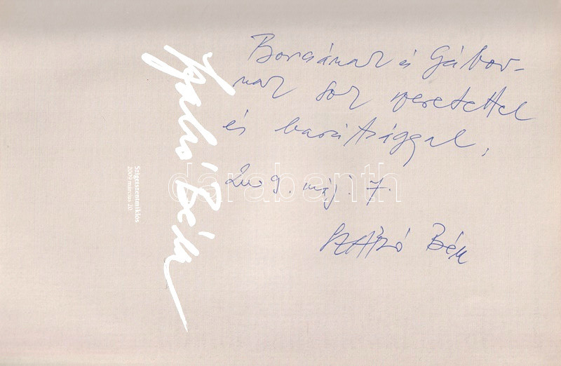 Dedikált: ?Borcsának és Gábornak sok szeretettel és barátsággal: Szabó Béla. 2009. máj. 9?.