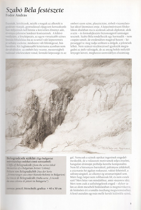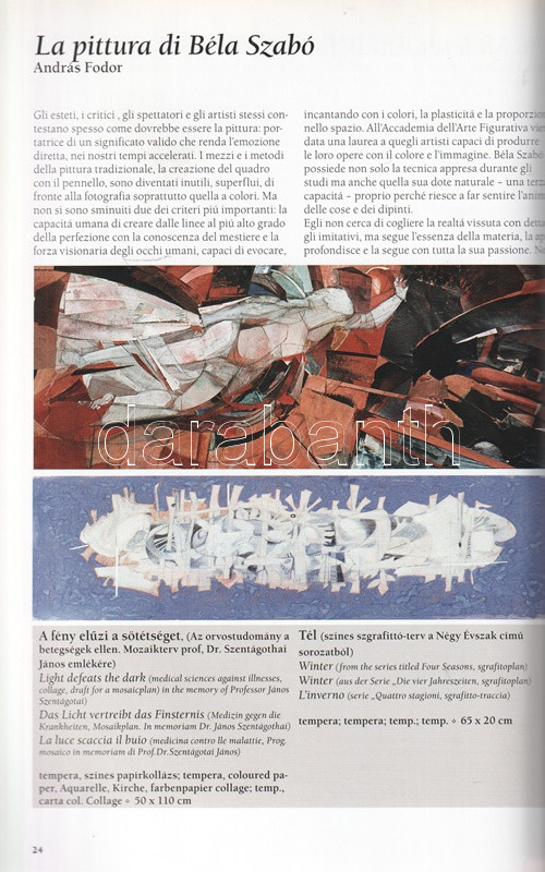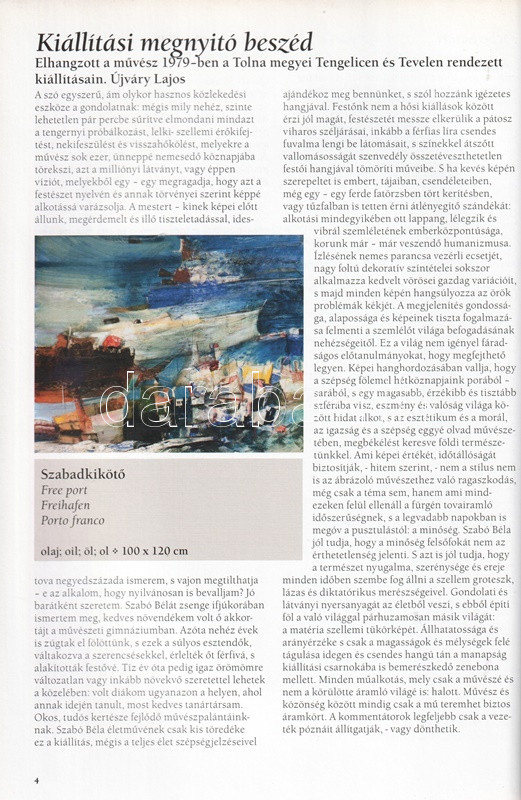 Szabó Béla (sz. 1937), festőművész, művészpedagógus, a Képző- és Iparművészeti Szakközépiskola tanára, művészeti igazgatóhelyettese. Tanári pályája mellett figuratív festményeivel az 1960-as évektől szerepel kiállításokon, nagy méretű pannója Buzsák község házasságkötő termét díszíti. Kiadványunk a Marcali születésű, Szigetszentmiklóson alkotó művész 2008-2009. évi önálló tárlatai alkalmából készült.