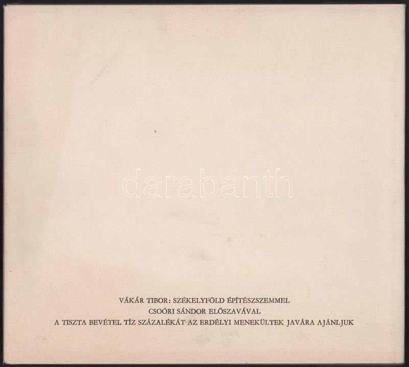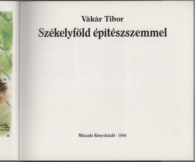 Vákár Tibor: Székelyföld építészszemmel. 1988, Műszaki. 180p. Kiadói egészvászon kötés, papír védőborítóval, jó állapotban.