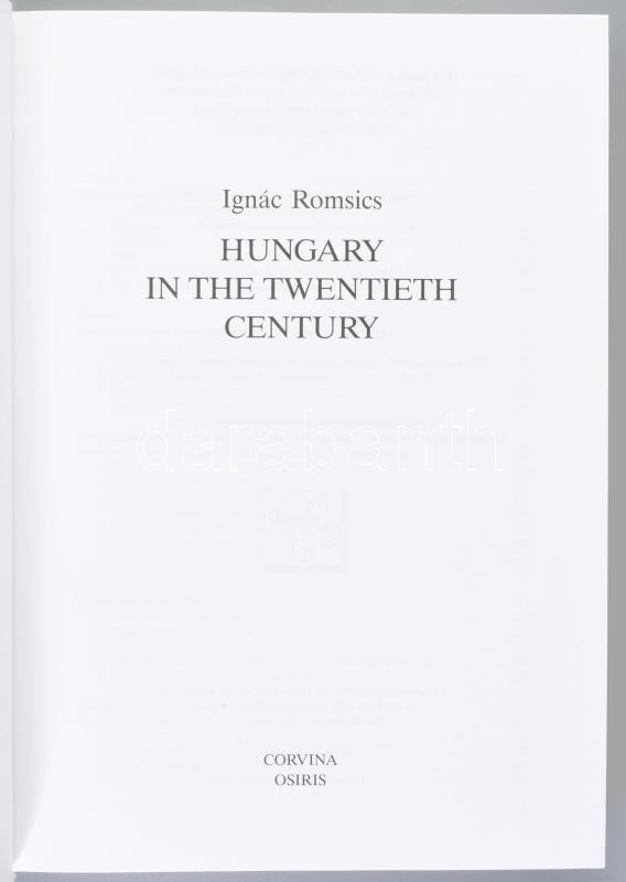 2 db - Kontler, László: A History of Hungary. 559p. Bp., Atlantisz. + Romsics, Ignác: Hungary in the Twentieth Century. Bp., 1999, Osiris. Kiadói papír és kartonált kötés, jó állapotban.