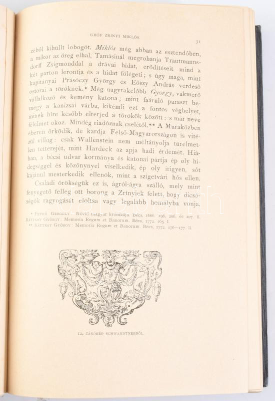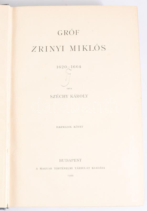 Széchy Károly: Gróf Zrinyi Miklós 1620-1664. I-V. kötet két kötetbe kötve. Magyar Történeti Életrajzok. Szerk.: Szilágyi Sándor. Bp., 1896-1898, Magyar Történeti Társulat, X+2+334+2 p.+6+1 t.;4+299+1 p; 4+352p.+4t.+3 kihajt. mell.+4+300p.+6t.+6+240p.+6t.+2 mell.+4+384 p.+9 t. +4 mell. Korabeli egészvászon kötésben. Számos illusztrációval, kihajtható melléklettel.