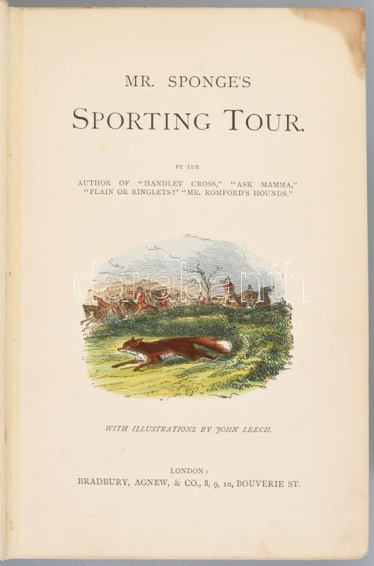 Mr Sponge's Sporting Tour London, Bradbury, Agnew & Co, with illustrations by John Leech. Aranyozott egészvászon kötésben Fűzésnél szétvált.