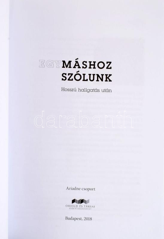 Előd Nóra (szerk.): Egymáshoz szólunk. Hosszú hallgatás után. Bp., 2018, Oriold és Társai. 225p. Kiadói papírkötés.