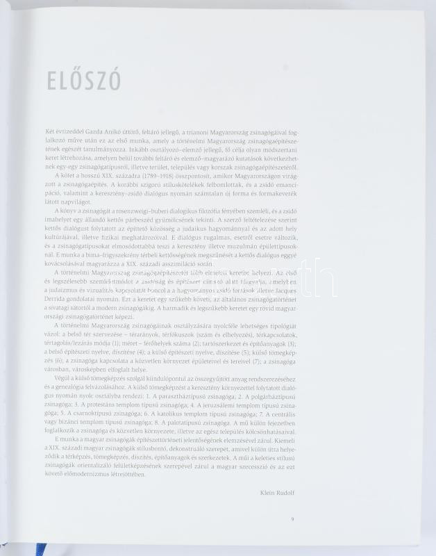 Klein Rudolf: Zsinagógák Magyarországon, 1782-1918. Fejlődéstörténet, tipológia és építészeti jelentőség. / Synagogues in Hungary, 1782-1918. Genealogy, typology and architectural significance. Bp., 2011, TERC, 677+[3] p. Gazdag képanyaggal illusztrált, izgalmas és részletes szakkönyv. Magyar és angol nyelven. Kiadói kartonált papírkötés, kissé sérült kiadói papír védőborítóban.