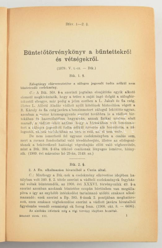 Uj döntvénytár. A Magyar Kir. Curia, Kir. Itélőtáblák, nemkülönben más legfelsőbb foku itélőhatóságok elvi jelentőségü határozatai. VII. kötet: Büntető törvény. Sajtótörvény. Összeáll.: Dr. Ráth Vég István. Bp., 1912, Grill Károly, 740p. Kiadói egészvászon-kötés, kopottas állapotban.