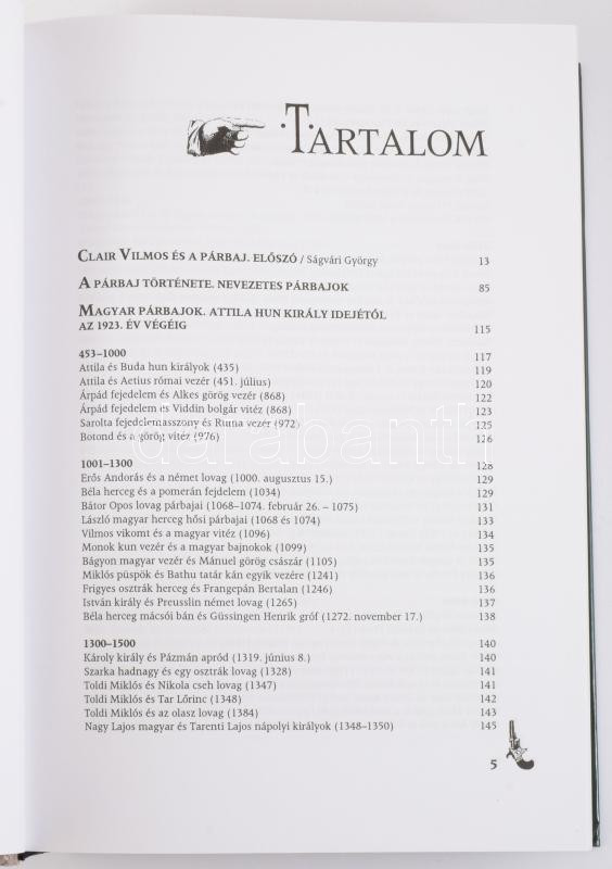 Clair Vilmos: Magyar párbaj. A párbaj története. Magyar párbajok. Párbajkódex. Ságvári György előszavával. Bp., 2002, Osiris, 594 p. Kiadói kartonált papírkötés.