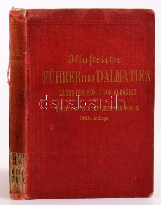 Illustrirter Führer durch Dalmatien. Längs der Küste von Albanien bis Korfu. Hartleben's Illustrirter Führer Nr. 12. Wien, Pest, Leipzig, 1896, Hartleben's. 145p. Kiadói egészvászon kötés, gerinc sérült, kopottas állapotban.