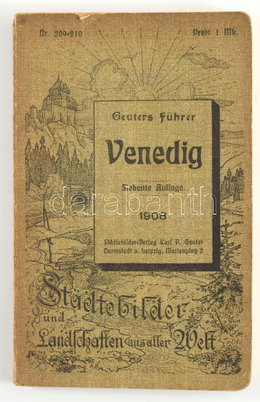 (Velence útikönyv) Geuters Führer - Venedig. Darmstadt, 1908. Geuter. Szövegközti képekkel és egy kihajtható térképpel illusztrált. Kiadói kartonált papírkötésben