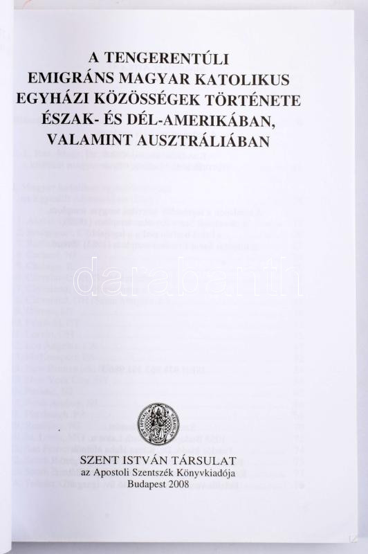 Miklósházy Attila SJ. (összeáll.): A tengerentúli emigráns magyar katolikus egyházi közösségek története Észak- és Dél-Amerikában, valamit Ausztráliában. Bp., 2008, SZIT. 224p. Papírkötésben, jó állapotban.