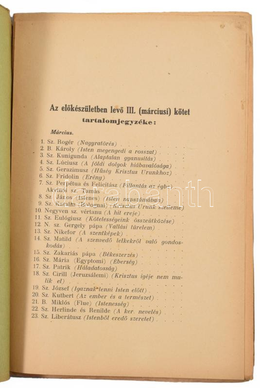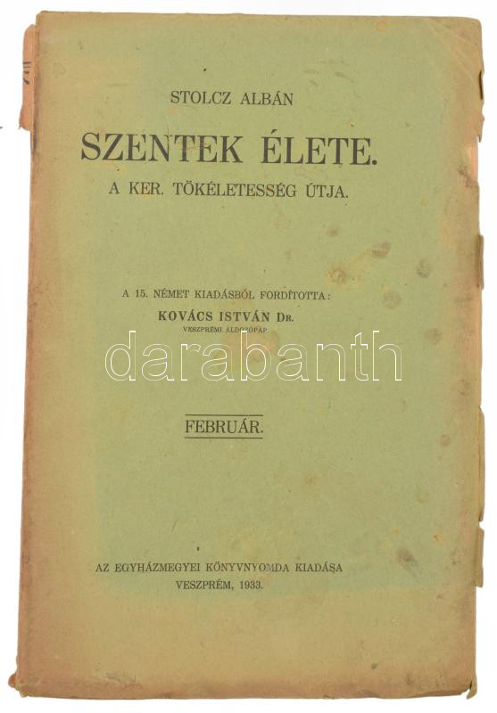 Stolcz Albán: Szentek élete. A keresztény tökéletesség útja. 1-12. teljes évfolyam. Veszprém, 1932, Egyházmegyei Könyvnyomda. Papírkötésben, kopottas állapotban.