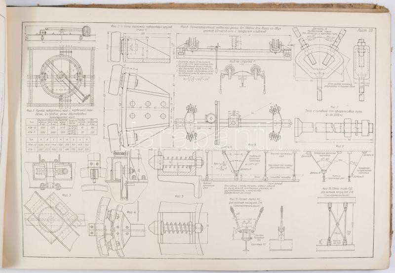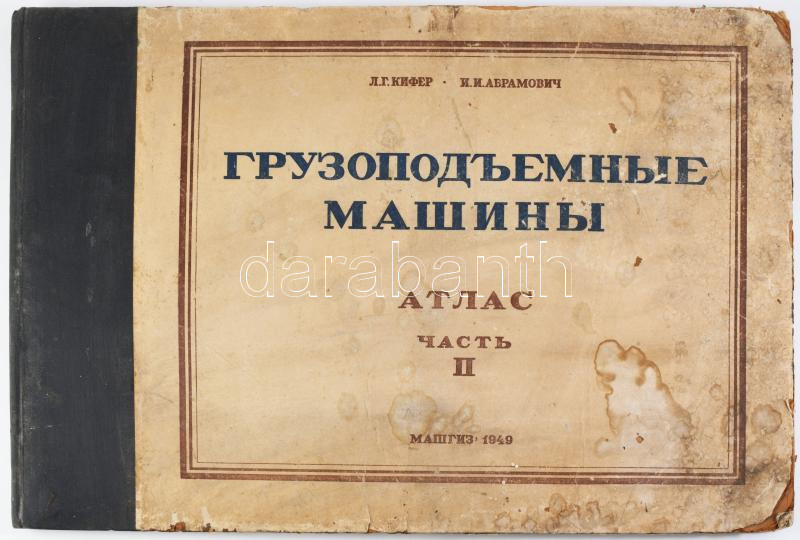 L. G. Kifer - I. I. Abramovich: Emelőgépek. Atlasz. II. rész. Moszkva, 1949, Mashgiz. Egészoldalas ábrákkal. Orosz nyelven. Kiadói félvászon-kötés, megviselt, foltos borítóval, néhány kissé sérült, foltos lappal, 34,5x51 cm.