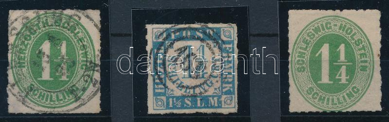 Német Államok Schleswig / Holstein 1864/65 Mi 4, 7 pecsételt + Mi 9 gumi nélkül, szép darabok!