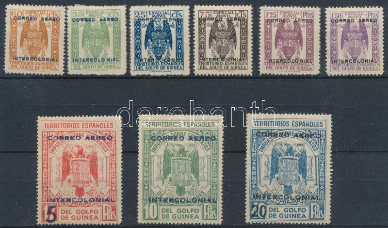 Territorios Espanoles del Golfo de Guinea 9 darabos okmánybélyeg sorozat CORREO AEREO INTERCOLONIAL felülnyomással