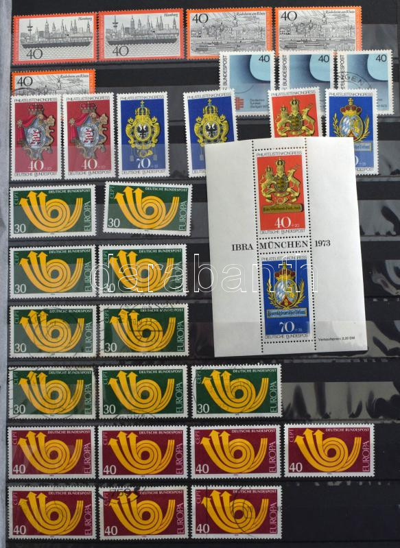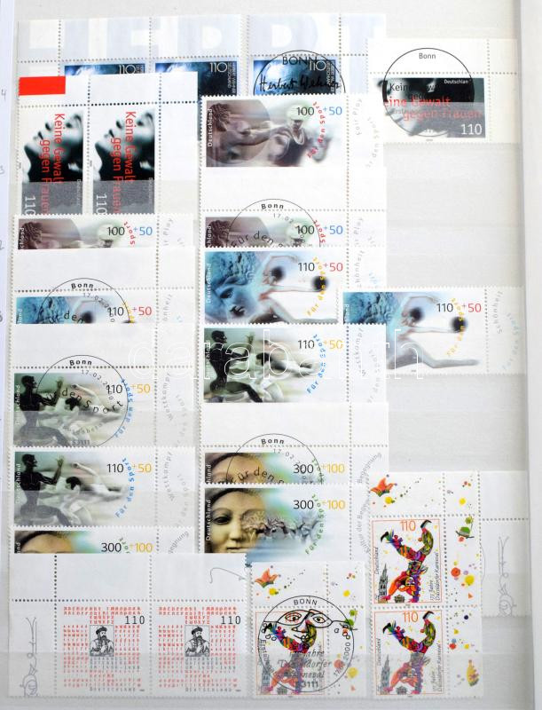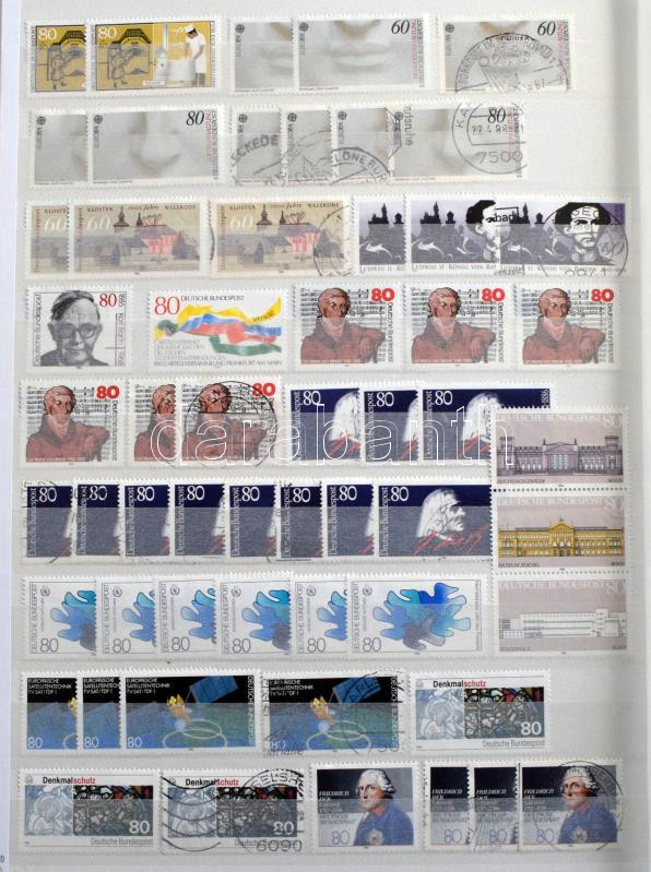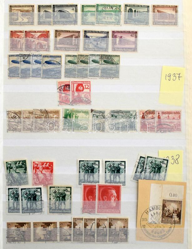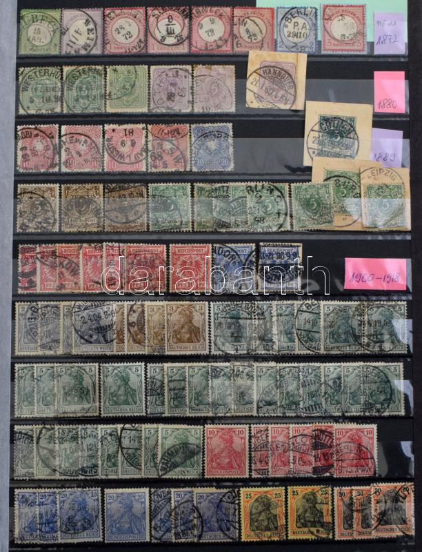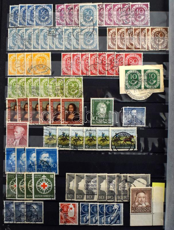 Németország sok-sok ezer rendezett bélyeg a kezdetektől ~2000-ig 6 db 30 lapos A/4 és 1 db 12 lapos nagyobb berakóban, hullámkarton ládában, benne német államok, Reich, megszállások, területek, zónák, NSZK, Berlin stb. Jó minőségű, szépen rendezett főleg bélyegzett anyag többlet példányokkal. Érdemes megnézni!