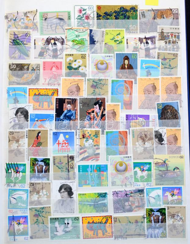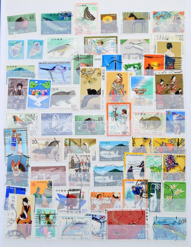 Japán bélyegek kis összeállítása 15 lapos A4-es berakó 9 oldalán, hozzá 5 oldalon Euro pénzek képei