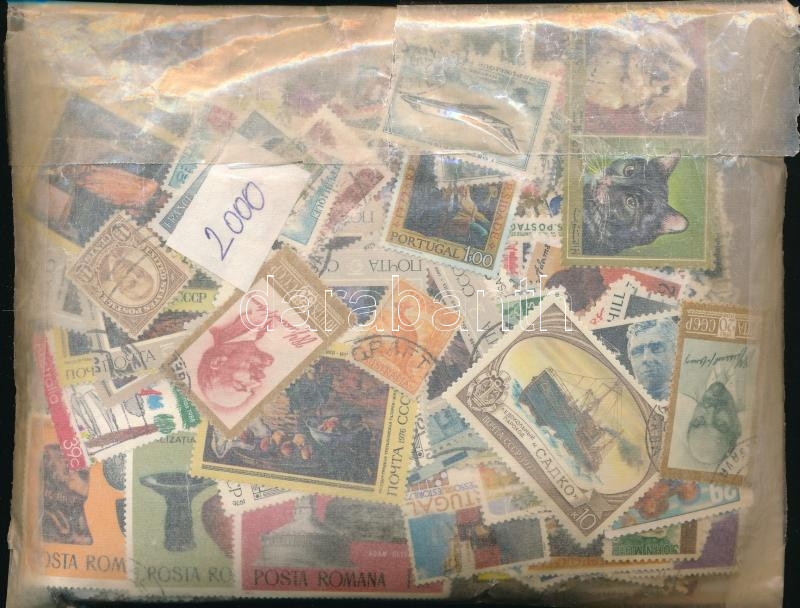 Min. 2.000 db vegyes külföldi bélyeg, köztük blokkok is, ömlesztve tasakban