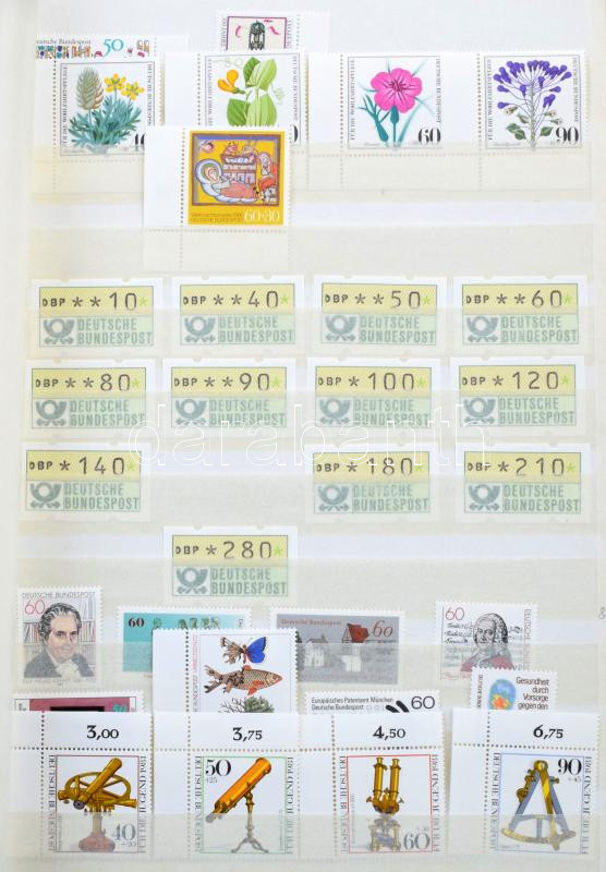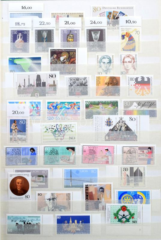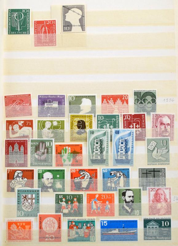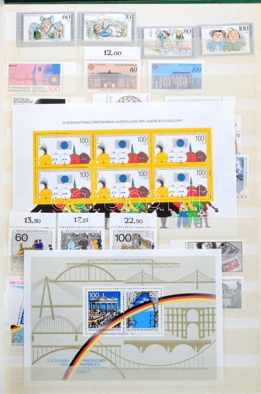 NSZK modern gyűjtemény az 1956-1958 + 1966-1991 közötti időszakból, benne sorok, blokkok és kisívek, 15 lapos A4-es berakóban