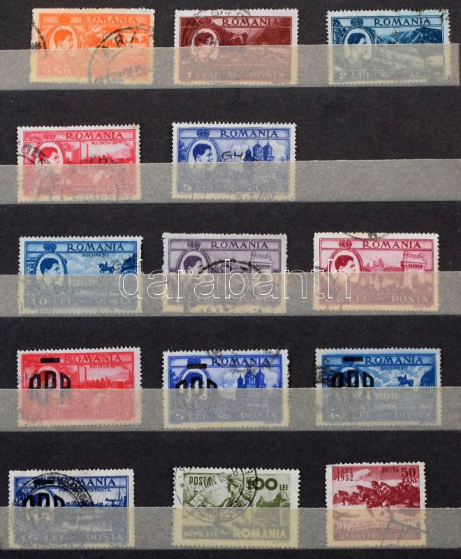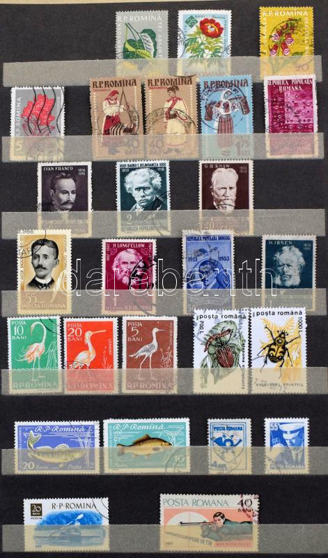Románia összeállítás régiekkel, több mint 500 db bélyeg néhány másodpéldánnyal, rozoga berakóban