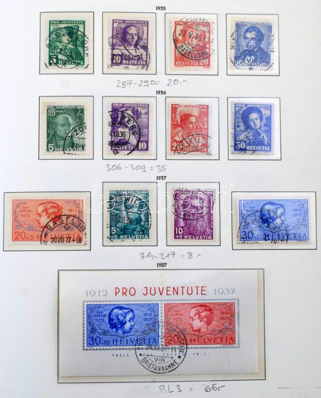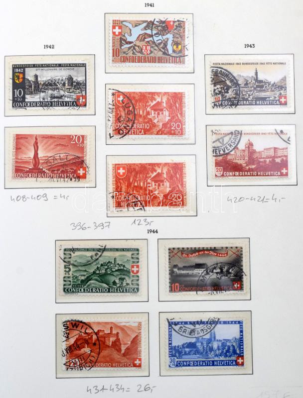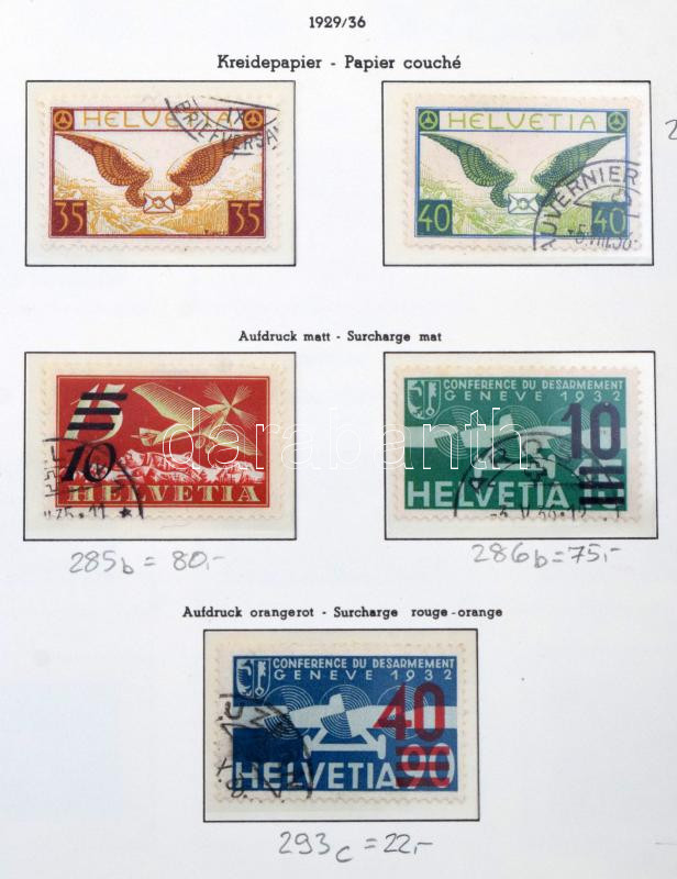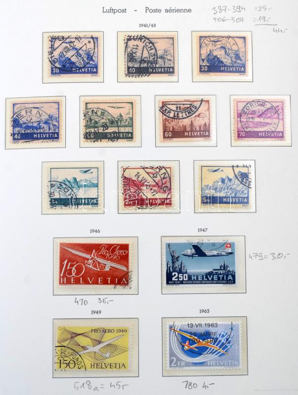 Svájc 1845-1960 tartalmas pecsételt gyűjtemény sok jó értékkel, teljes sorokkal Leuchtturm előnyomott albumban