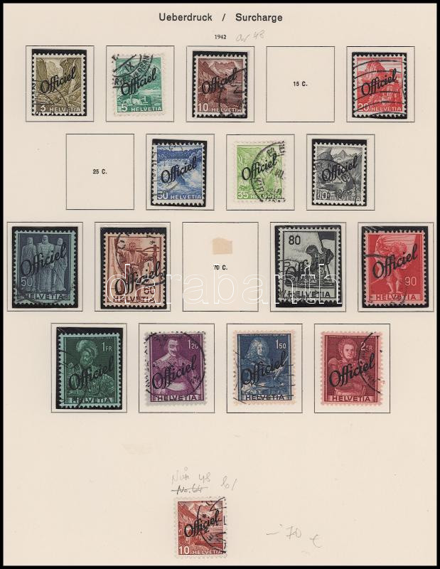 Svájc 1937-1950 Hivatalos bélyegek, benne 5 db komplett és 5 db hiányos sor