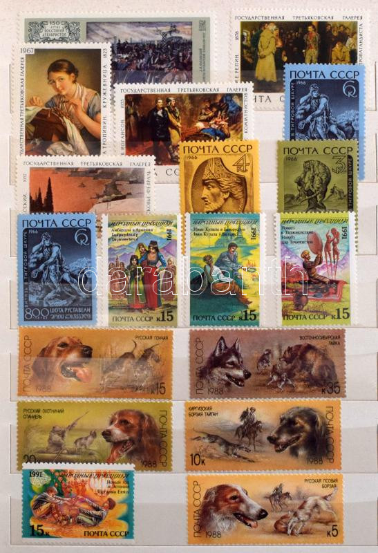 Szovjetunió főleg bélyegzett gyűjtemény az 1960-as évek közepétől 1991-ig sok blokkal, néhány másodpéldánnyal, hozzá FDC-k, levelek, díjjegyesek. Szép anyag 2 db A4 és 4 db közepes berakóban.