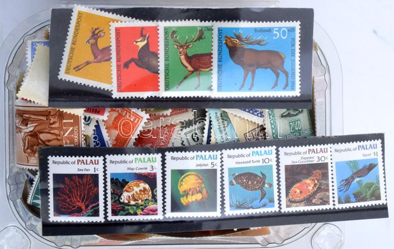 Több száz vegyes külföldi bélyeg gyarmatokkal is, kis dobozban