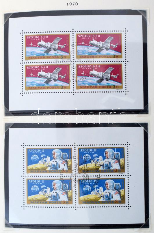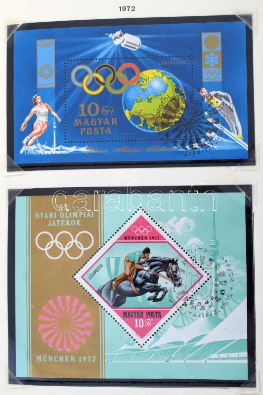 1966-1973 Magyar gyűjtemény sorokkal, blokkokkal Schaubek albumban kék textil borítóval