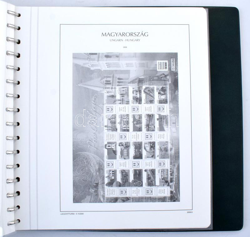 2009-2015 Leuchtturm Magyarország előnyomott albumlapok, 2 db zöld színű gyűrűs albumborítóban
