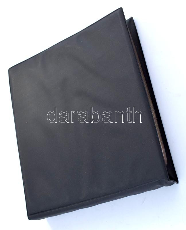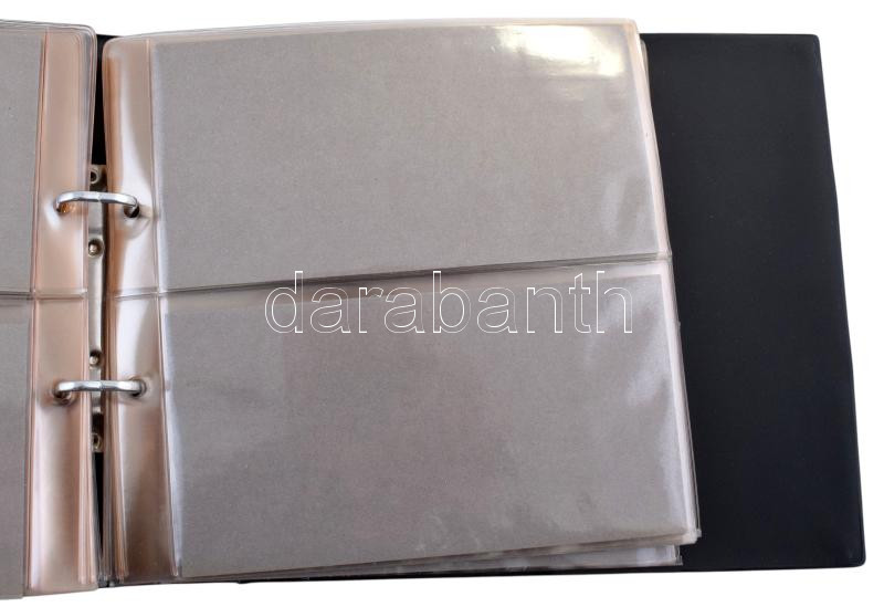 25 lapos, 100 férőhelyes újszerű állapotú műanyag levélberakó, fekete gyűrűs borítóval, tokkal