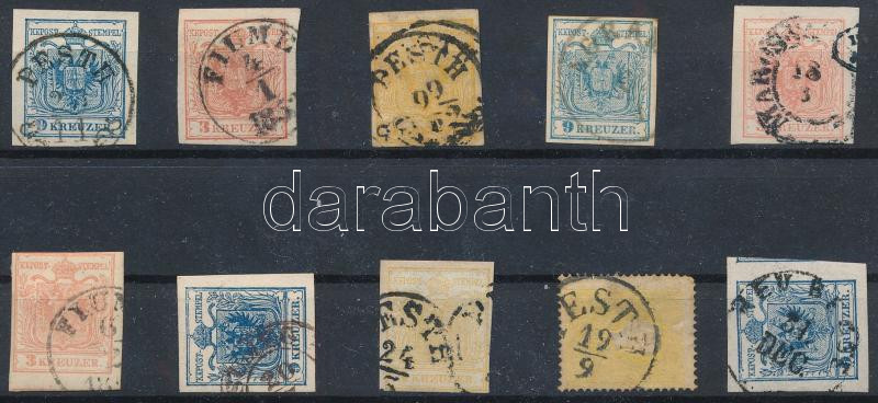 1850 9 db bélyeg jobbakkal + 1858 2kr