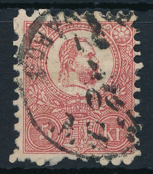 1871 Kőnyomat 5kr "kilőtt szem" lemezhibával (foghibák / perf. faults)