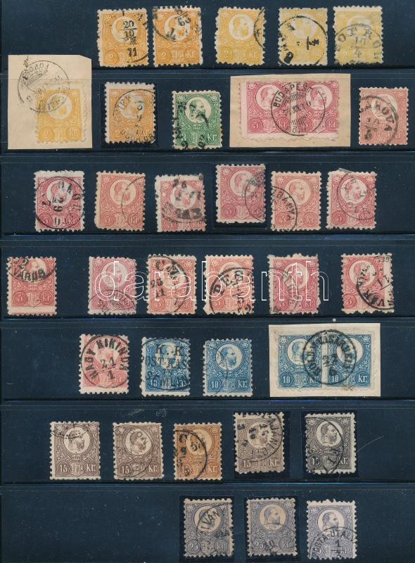 1871 Réznyomat tétel berakólapon, közte szép színárnyalatok, olvasható bélyegzések. Pár érték 2., 3. osztályú minőségben (min 120.000) (mixed quality)