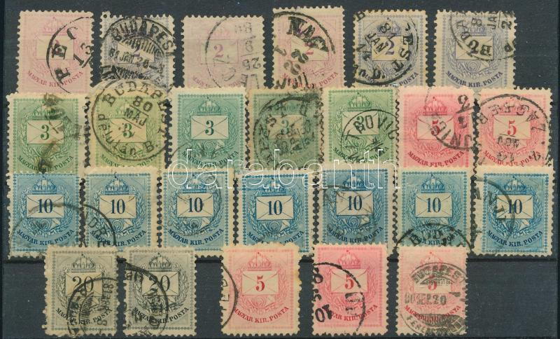 1874 25 db krajcáros bélyeg stecklapon, közte szép színváltozatok