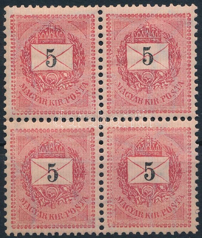 1889 5kr négyestömb 12 : 11 3/4 fogazással, POSTATISZTA, luxus minőségben!